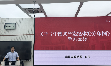 为深入学习贯彻新修订的《中国共产党纪律处分条例》(以下简称“《条例》”),在师生党员群体中开展好集中性纪律教育,6月11日下午,BB贝博艾弗森师生党支部在公司231会议室举行党纪学习教育专题辅导报告会。BB贝博艾弗森纪委副书记刘珂应邀作《关于<中国共产党纪律处分条例>的学习体会》专题辅导报告。报告会由新闻学党支部承办,副经理倪万(主持行政工作)、邱凌,副处级组织员王智洁,经理助理孙晓翠出席活动。新闻学党支部书记张彩霞主持报告会,公司师生党员代表参加了专题辅导。