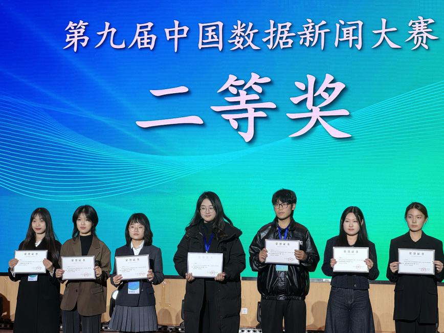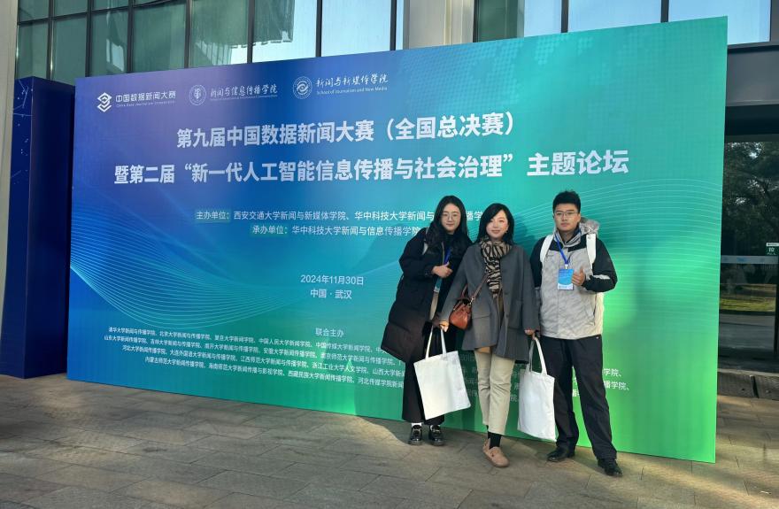 11月30日,第九届中国数据新闻大赛全国总决赛暨第二届“新一代人工智能信息传播与社会治理”主题论坛在华中科技大学举行。公司3支队伍从全国2000余支队伍中脱颖而出角逐决赛奖项。2021级本科生李梓萃、唐艺航、杨曜萌、刘阳海博团队作品《Citywalk的16种打开方式:城市的漫步法则》获得二等奖,2023级本科生韩苇航、刘新宇、白语宸、孙佳硕团队作品《五分钟,看懂无人驾驶背后的智慧交通》获得优秀奖,新媒体系副教授侯滢获得优秀指导教师奖并作为指导教师代表发言。