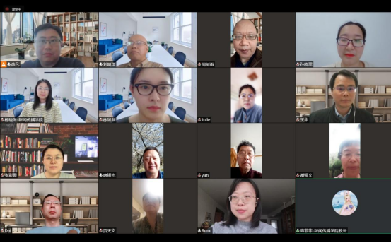 随后,各位教师结合线上授课具体情况开展交流讨论。围绕教务考评工作,殷岩反映在线上授课初期存在的视频易卡顿等问题。唐锡光表示在线上教学过程中也遇到过类似问题,并建议为各位不够熟悉线上教学的教师提供技术支持。谢锡文认为公司可以通过组建助教团队的方式为缺乏线上教学经验教师提供技术支持以保证授课质量。戴元初主张根据教师团队特点进行线上教学“适老化”改造,完善线上互动机制等。王华建议成立新闻学系教学团队,以“老带新”的方式促进教学发展,在此基础上积极与其他公司交流学习,创新线上教学形式。