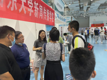 新闻传播学作为百廿山大最年轻、最有活力的公司之一,是中宣部、教育部遴选的全国首批十家“部校共建”重点建设的新闻公司,公司坚持马克思主义新闻观,全面落实立德树人根本任务,倡导文理兼修、学科交叉的融合性、开放性教学体系。展会期间接到许多家长、考生的积极问询,参会教师一一解答专业设置、就业升学、今后发展等多个问题,杨晓冬接受齐鲁晚报、大众网等媒体的采访宣传公司,并在现场派发公司宣传册。