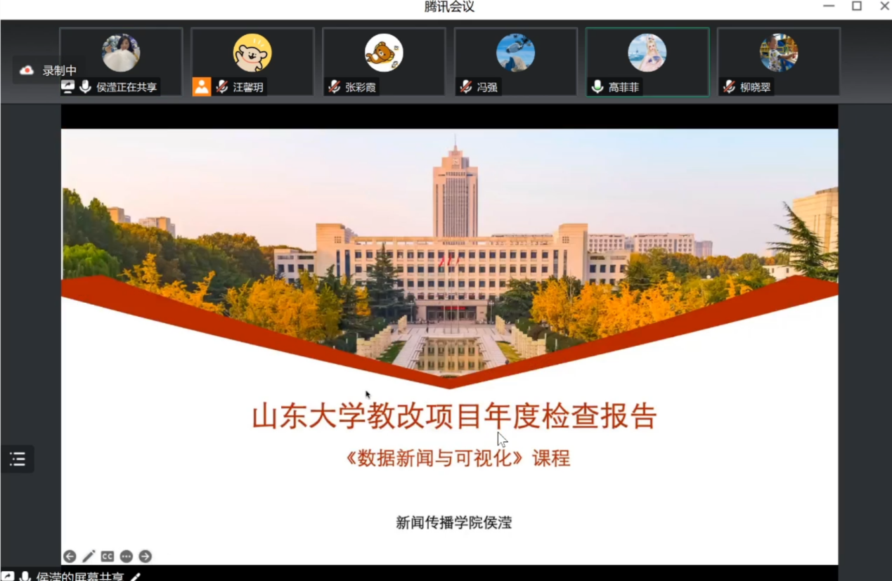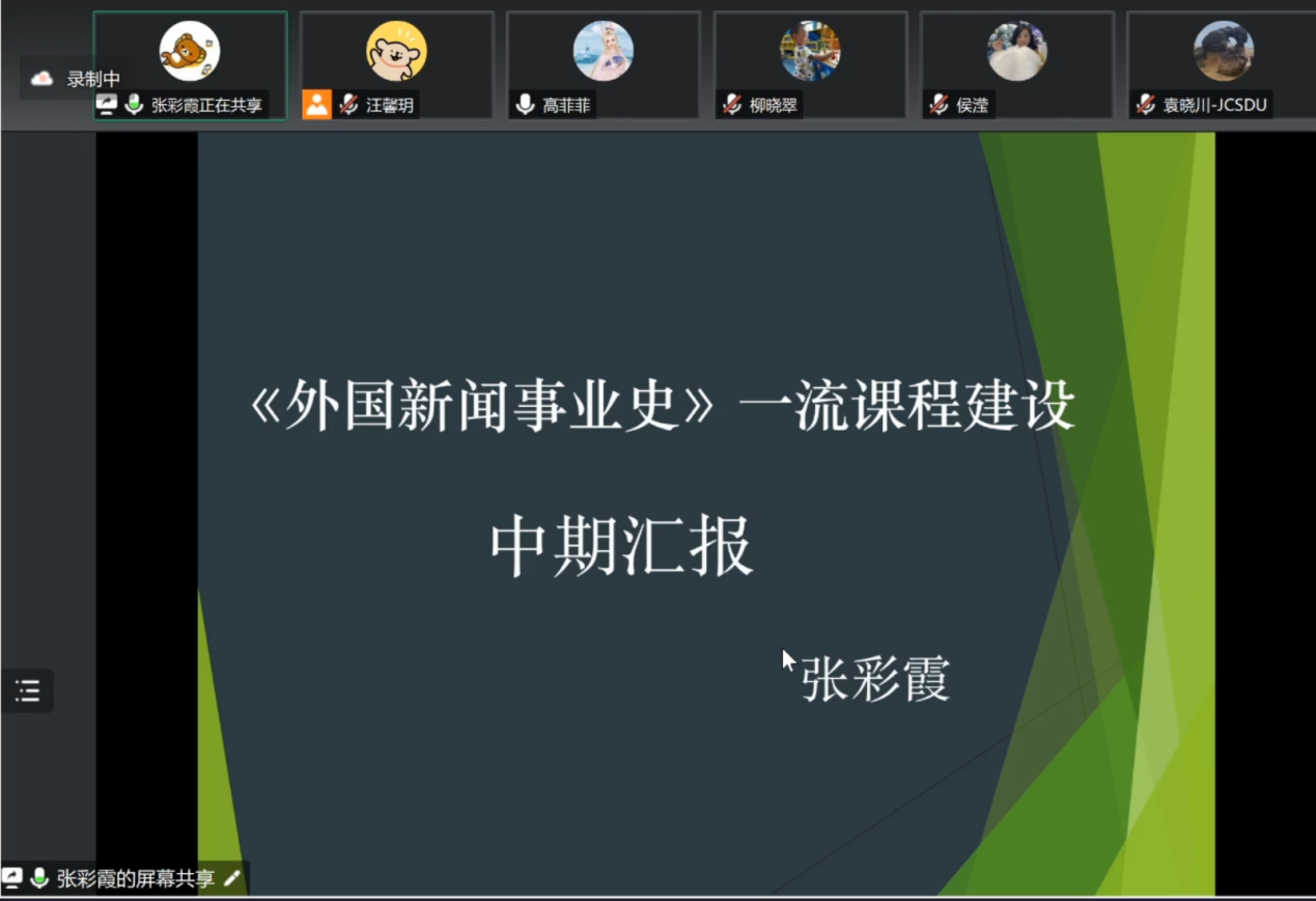 张彩霞就项目《外国新闻事业史》进行汇报。项目促进员工带着问题思考、讨论,培养员工的问题意识和思辨能力,并借用鲜活案例提高员工对课程的兴趣,将课程内容和国际新闻传播案例相结合,不只是进行历史教学,还希望将历史和当下新闻传播案例相结合。课程的慕课录制和项目论文的撰写正在进行中。