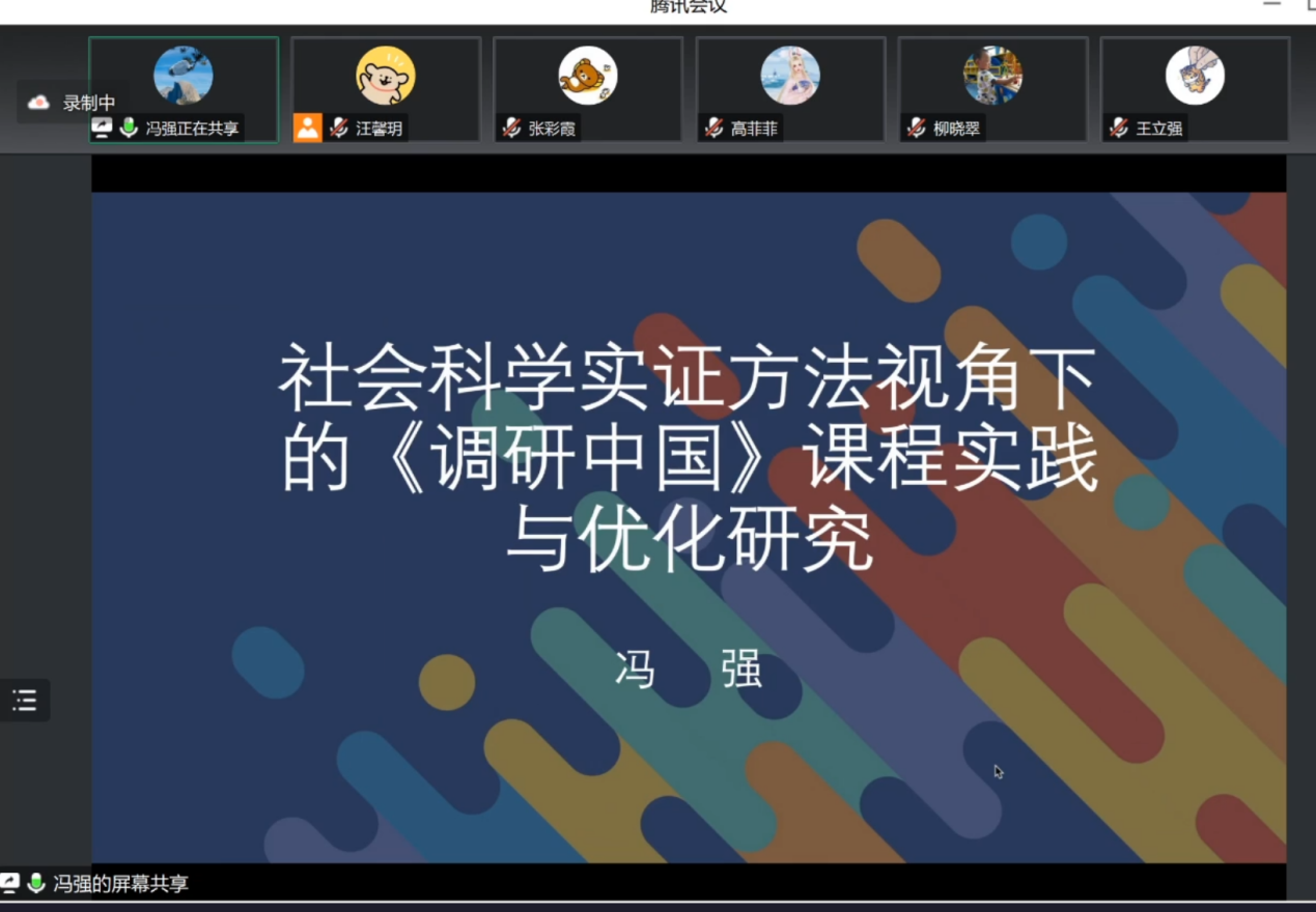 冯强对《社会科学实证方法视角下的<调研中国>课程实践与优化研究》项目的进展进行汇报。项目梳理了国内的985院校相关社会调查类方法类课程情况;在教改项目的支持下,本科生参与了BB贝博艾弗森的第18届挑战杯老员工课外学术科技作品竞赛,已获校级一等奖;员工展开社会调研,参与老年人手机使用的研究。后续工作将围绕举行读书会、午餐会和指导本科生进行社会调研展开。