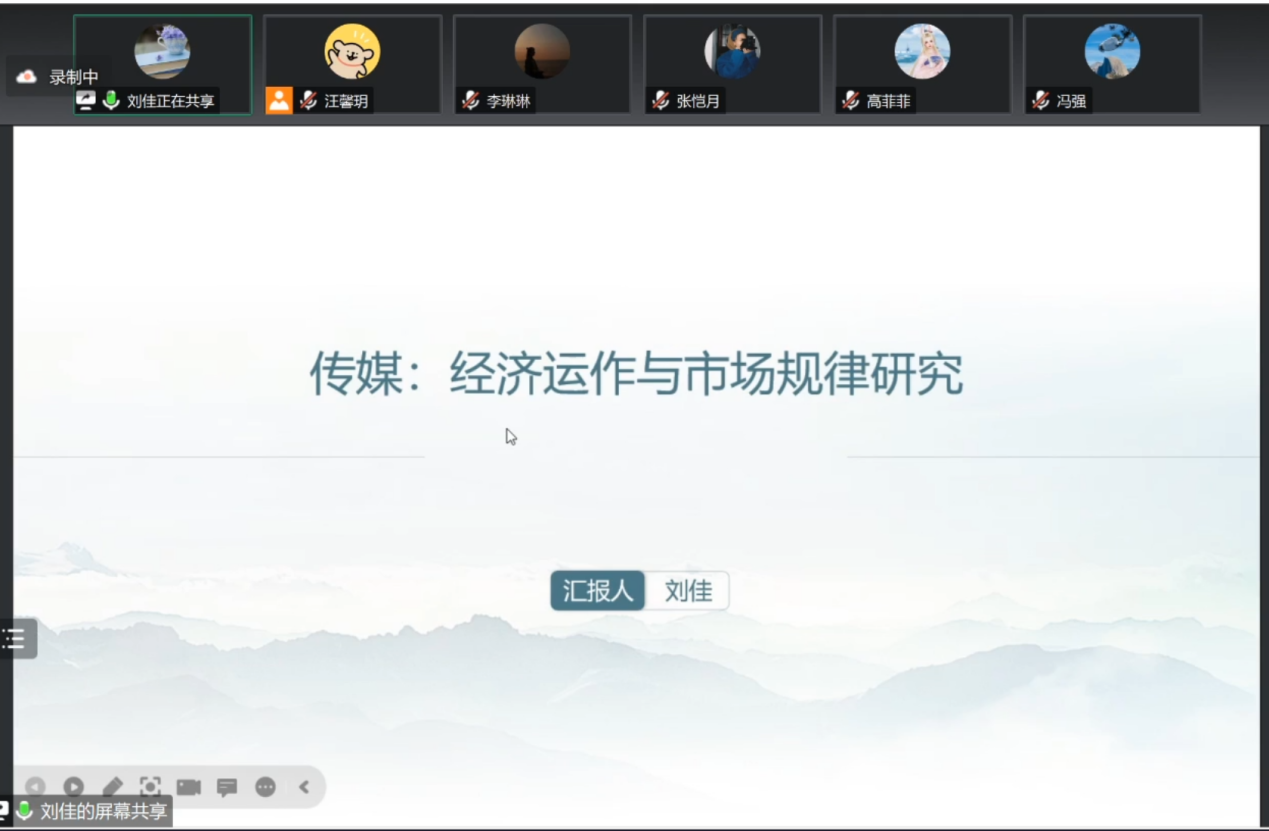 刘佳就项目《传媒:经济运作与市场规律研究》进行汇报。该项目依托的经济学和管理学研究媒体运作和传媒市场的规律,培养员工分析问题、解决问题、研究问题的能力。项目撰写并出版了《媒介经营管理案例》一书,发表了核心期刊论文一篇、普通刊物三篇。项目联合公司的相关课程老师及包括业界的导师,培养具有跨学科复合型知识结构、拥有人文修养、全面技能的,同时又具有马克思主义新闻观的新闻与传播人才。