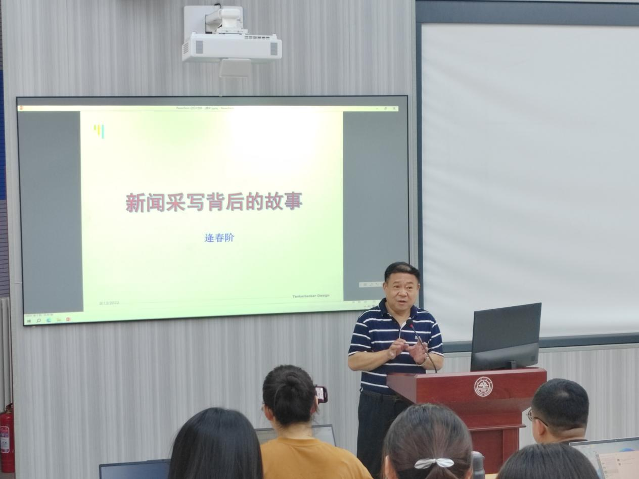 2023年9月13日,BB贝博艾弗森2023年秋季学期“业界精英进课堂之我所经历的新闻故事”系列课程第一讲在中心校区董明珠楼113d教室举行。本讲由大众报业集团高级记者、全国优秀新闻工作者、山东省报告文学会长逄春阶担任主讲人。