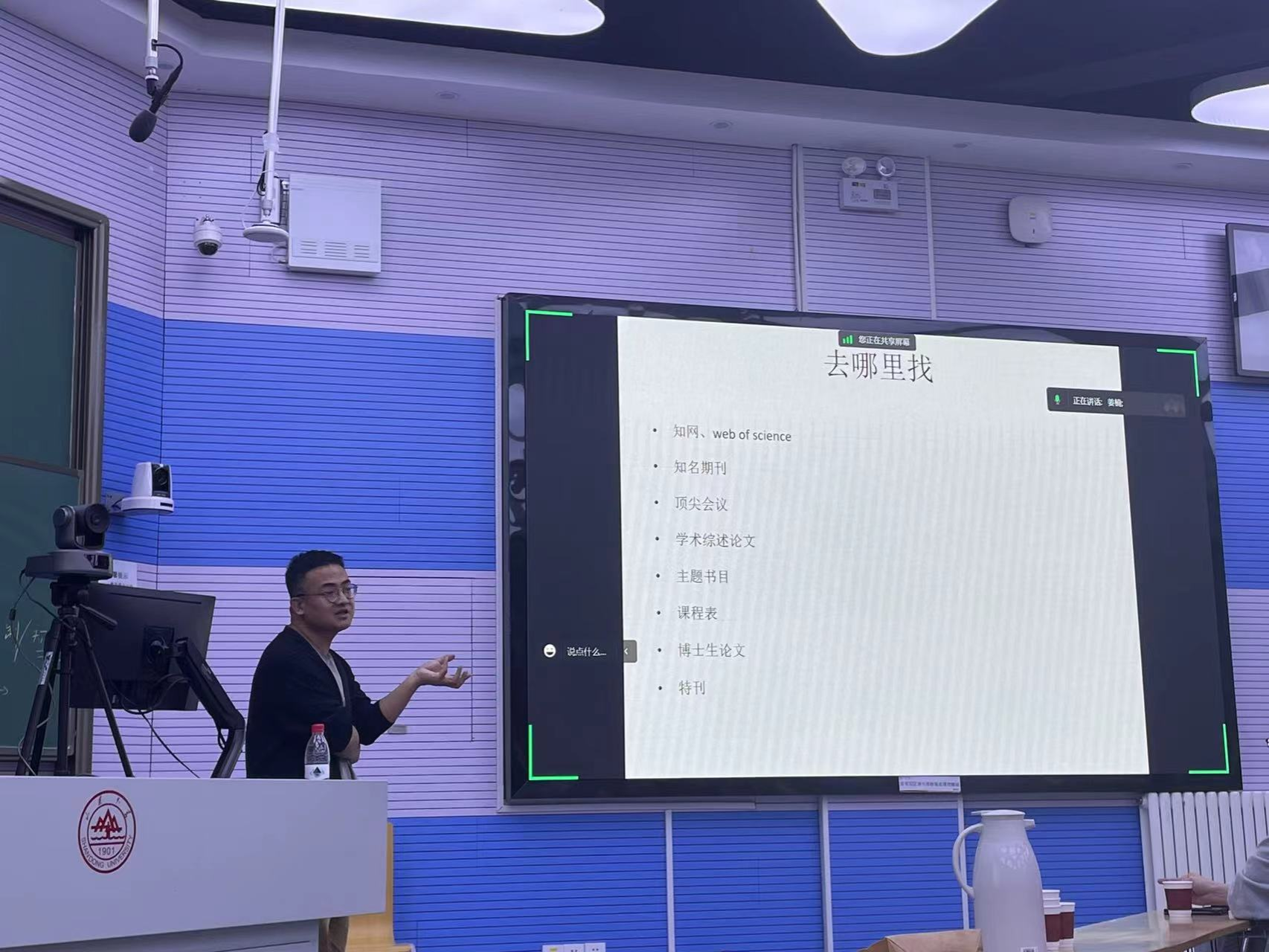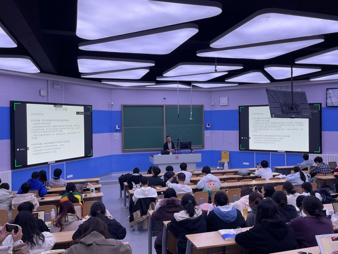 11月17日晚7点,公司新生研讨课在董明珠楼112教室如期举行,此次研讨课有幸邀请到了中国人民大学新闻公司副教授苗伟山老师,为2023级本科生带来“选题、文献和方法:本科生论文写作ABC”的精彩分享。本次讲座由班主任姜楠老师主持,与威海校区文化传播公司2023级的同学们线上、线下共同研讨,同时本次课程也吸引了大二、大三的学长学姐,以及研究生学长学姐们旁听学习。