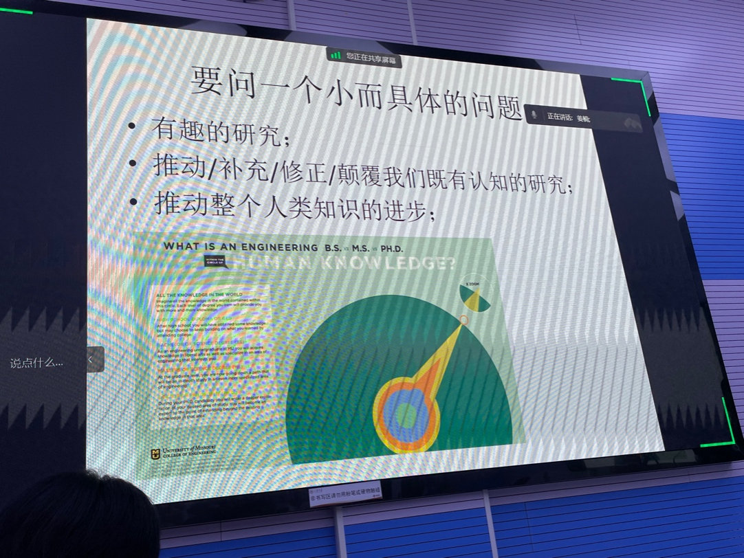 在互动环节,苗老师就同学们的疑问和困惑进行了解答。他指出,是否未来要去涉足科研领域,这还是要看自己的目标。当你做决定之前,应该先把信息调查清楚。他说:“就像我之前教的员工,他完全掌握了我的访谈法,他访谈了30多个人。我认为在我做一个可能影响我3-5年的决定时,我一定要尽自己的努力把事情尽量了解清楚。”