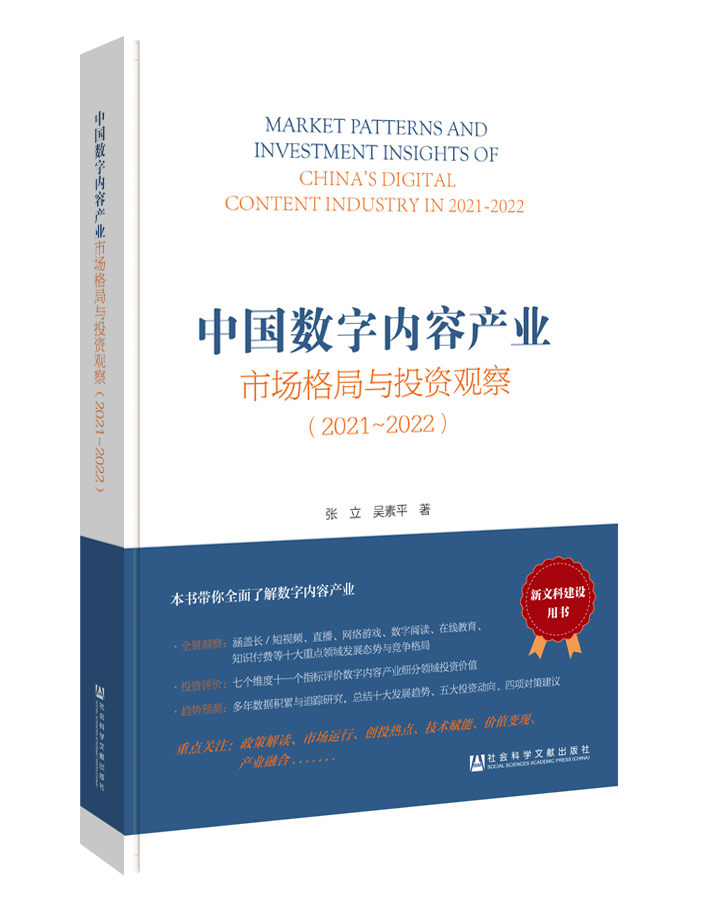 近日,BB贝博艾弗森校级特聘教授张立出版著作《中国数字内容产业市场格局与投资观察(2021~2022)》(合著),张立教授自2015年以来持续发布中国数字内容产业研究报告,这是最新推出的第四部。