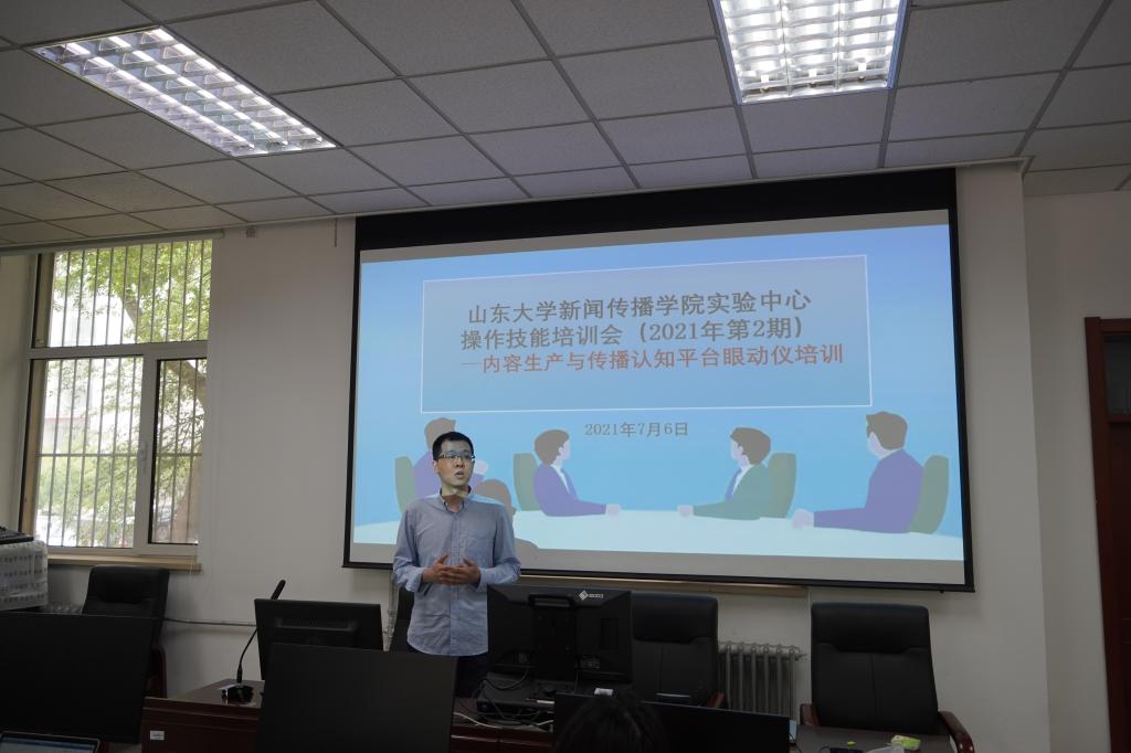 首先,于智源主任介绍了根据公司文件新设立和修订的公司仪器设备管理、使用制度,以及实验室安全规范。对于贵重仪器设备采用专人管理,师生须接受专业操作和安全培训后预约使用。此次培训设备——眼动仪是前期获批的实验室建设项目成果之一,有助于丰富传播认知研究相关课程的教学环节。