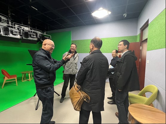 王德胜对工训中心一行表示热烈欢迎,并介绍了公司的基本情况,表达了在深化新文科建设背景下对双方深入合作的强烈愿望,提出新闻传播专业人才培养需要相关学科的技术支持。介绍了公司党建的载体化、特色化、实效化、品牌化特点。刘明洋介绍了公司的人才培养体系、专业优势和特色,提出媒介工程学符合新文科的发展方向,工程训练中心一直是我们一流专业建设重要的国家级平台,在服务社会等方面需建立紧密合作,从而在新文科建设上推出标志性成果。副经理邱凌介绍了公司专业设置方面的情况。着重从融合新闻、策略传播、大数据与智能媒体三个方向进行介绍。强调了需培养通识型人才,把劳动培训课与专业课程相结合,在新文科特色方面培养具有山大特色的课程集群。实验中心主任于智源就公司实验室建设作了详细的介绍。