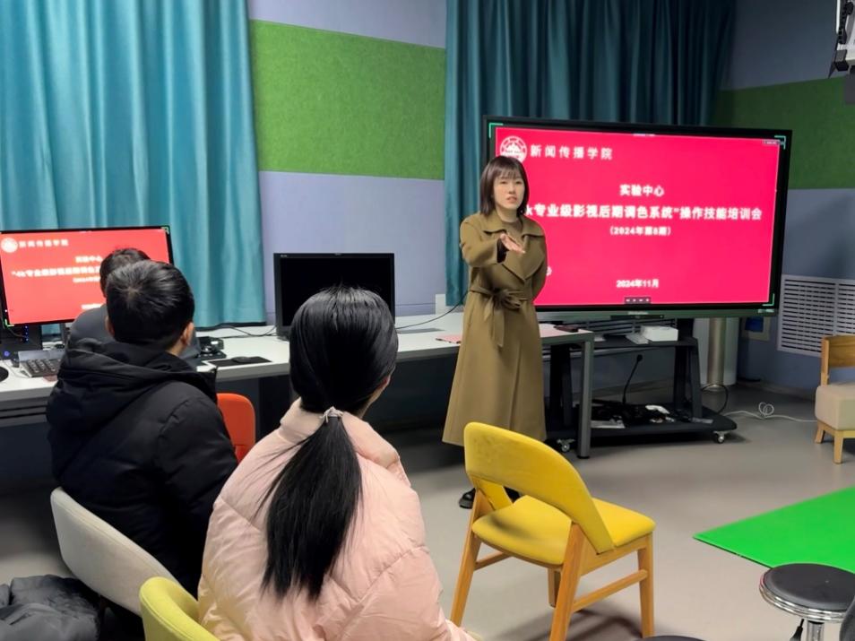 2024年11月29日上午,实验中心举办了4K达芬奇调色系统设备操作技能培训会 (2024年第8期),公司任课教师、广播电视台、实验管理人员和助管等十余人参加本次培训会。培训会由实验教师张恺月主持。