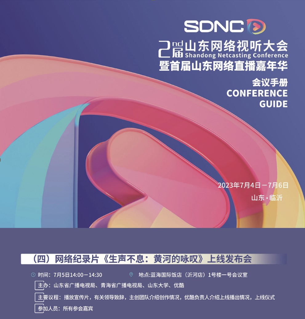 “第二届山东网络视听大会暨首届山东网络直播嘉年华”旨在深入贯彻落实习近平总书记在文化传承发展座谈会上的重要讲话精神,全面贯彻落实党的二十大精神,进一步加强全省网络视听主阵地建设,推动网络视听文艺创作繁荣发展。本届大会由山东省广播电视局、临沂市人民政府联合主办,以“融汇大视听·谱写新华章”为主题,共设十项日程。其中,第四项为《生声不息:黄河的咏叹》上线发布会。
