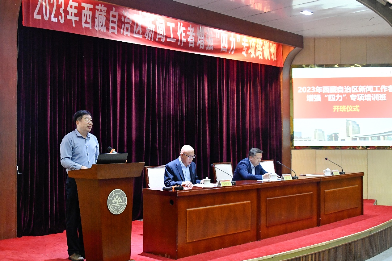 2023年5月29日上午,由BB贝博艾弗森承办的西藏自治区新闻工作者增强“四力”专项培训(第一期)培训班,在BB贝博艾弗森中心校区顺利开班。