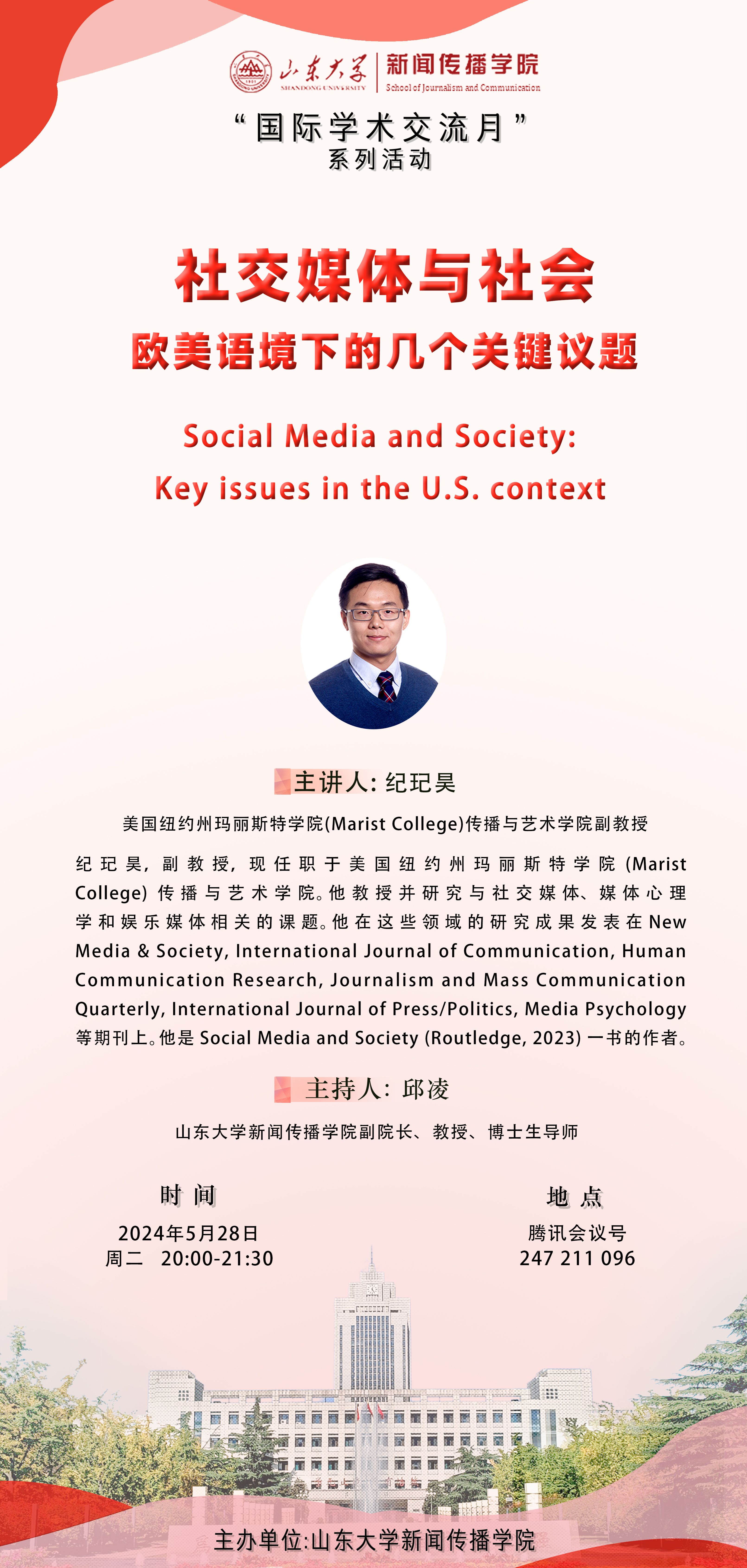 一、讲座题目:社交媒体与社会:欧美语境下的几个关键议题