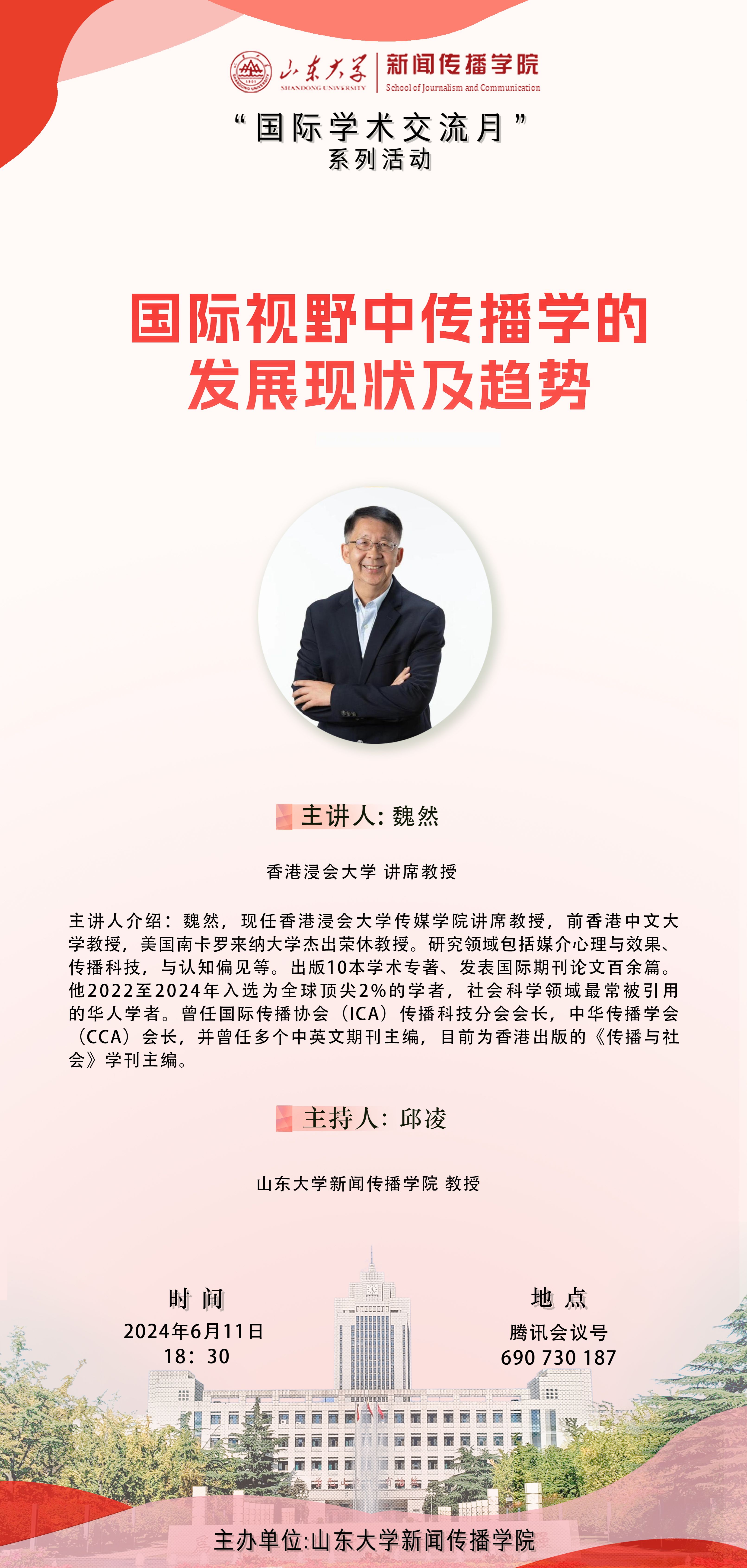 一、讲座题目:国际视野中传播学的发展现状及趋势