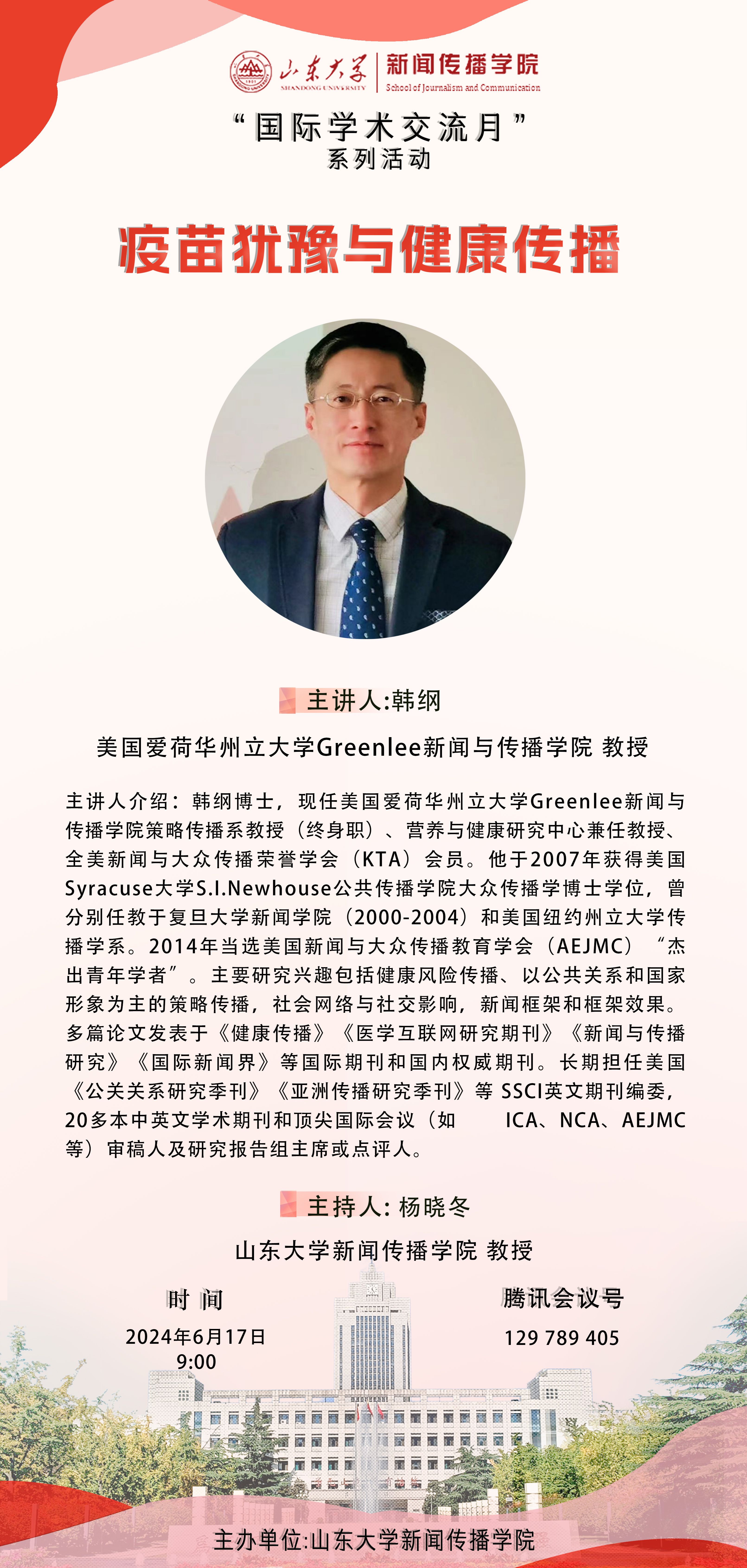二、主讲人:韩纲 美国爱荷华州立大学Greenlee新闻与传播公司 教授