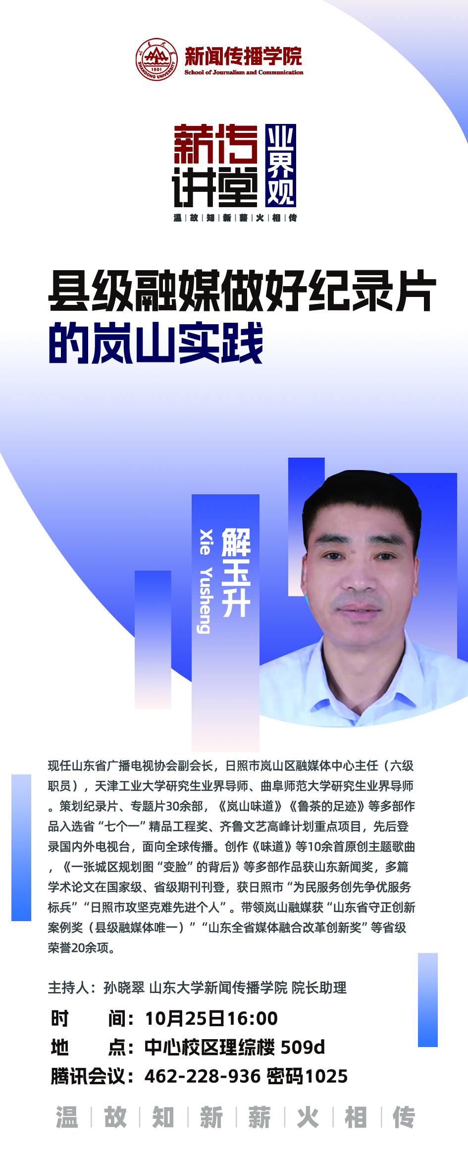 二、主讲人:解玉升,日照市岚山区融媒体中心主任