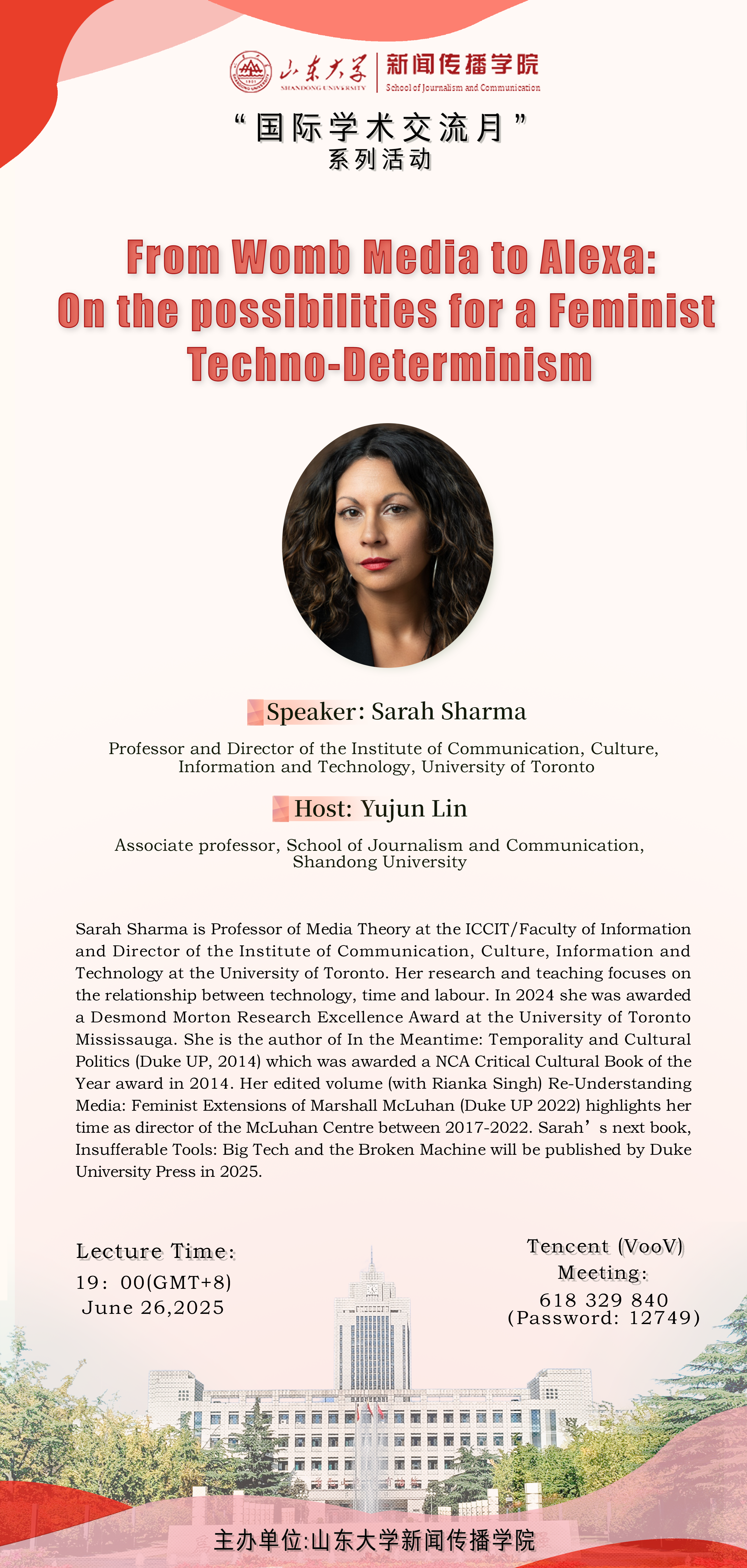 Speaker:Sarah Sharma, Professor and Director of the Institute of Communication, Culture, Information and Technology, University of Toronto