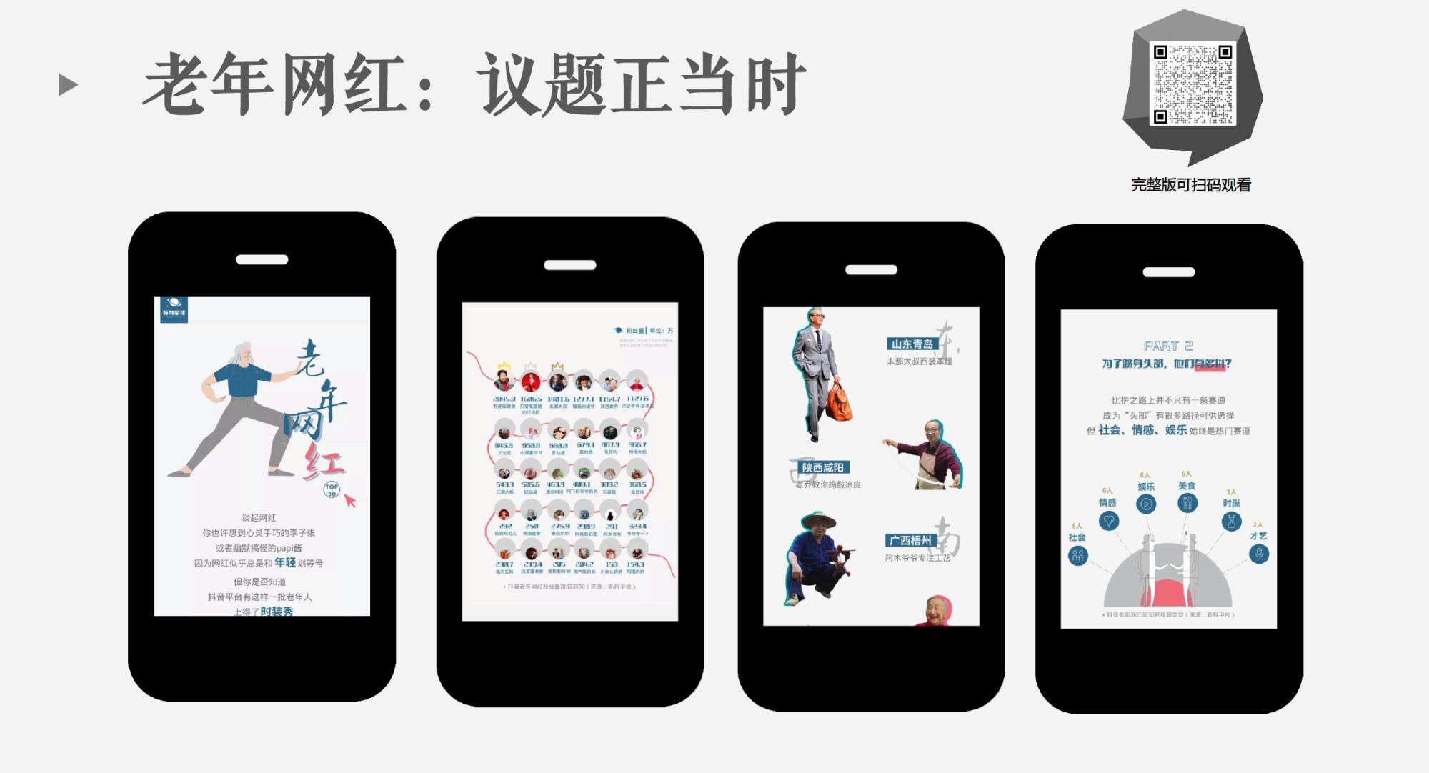 据悉,公司三等奖获奖作品《这届老年人当起网红,也太强了吧!》是基于新媒体系侯滢老师主讲的《数据新闻及可视化》课程作业优化而成。团队成员在课堂选题时关注到2021年CNNIC发布的最新互联网发展报告,数据显示我国60岁及以上网民占比11.2%,其中不乏老年人新媒体使用熟练的网红。由此,团队以老年网红为切入点,探究老年网红的创作质量、经济效益和社会影响,呈现“积极老龄化群体”的社会实况,使得更多人看到老年群体在网红行业的成就,为积极触网的“新潮”老年人正名,为代际交流、理解、包容做出贡献。其次在图文设计方面,结合精准可溯源的数据与符合视觉偏好的图像,使读者轻松理解新闻中的复杂数据,快速获取核心信息。作品运用极具创意的设计图形、插画,融合了交互的元素,力求达到和谐、简洁、易读的可视化效果。