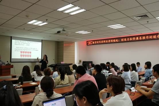 5月22日上午,英国伦敦大学金史密斯公司传播与媒介系主任、国际知名媒介理论学家、作家、艺术家和策展人乔安娜·瑞林斯嘉(Joanna Zylinska)教授做客新闻传播大讲堂,为师生带来了题为“数字时代非职业者的崛起:创造力和价廉易操作的媒介”(The rise of the amateur in the digital age: creativity and ‘cheap and simple’ media)的精彩讲座。副经理邱凌担任现场翻译并主持了本场讲座。