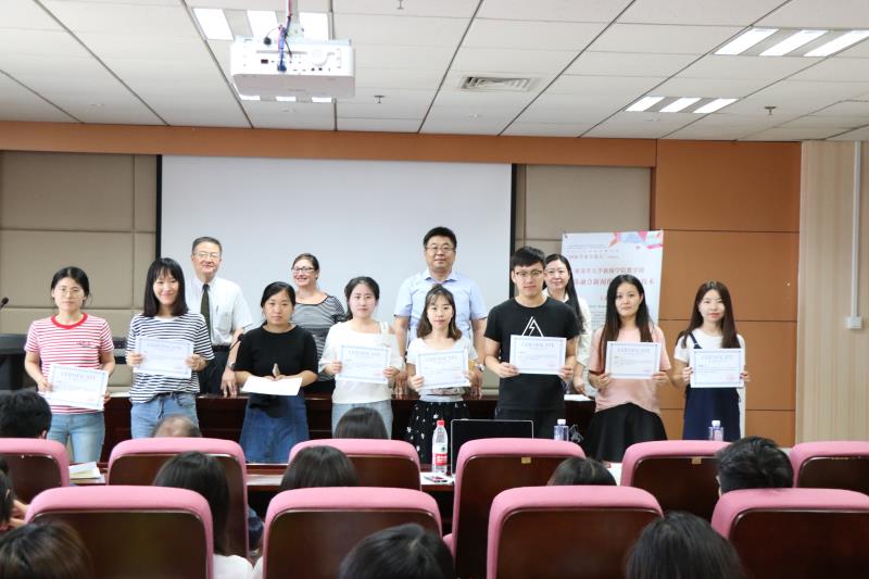 6月1日是本次教学周员工融媒体作品的展示时间,员工以小组为单位,展示了以文本、摄影图片、图表及视频等多形式融合的新闻作品。内容从“山大流浪猫”、“中国书法爱好者”到“济南街头的泉水直饮点”、“章丘打铁人”等,题材丰富,故事性强。对于每一组的作品,两位教师都逐一点评,并根据打分情况评选出了三个优秀小组。在最后的课程结业仪式上,艾米副教授、章于炎博士以及倪万副经理和邱凌副经理为员工们颁发课程证书。为期一周的教学活动,员工不仅从理论上对媒体融合有了理解和认知,而且切实从实践层面认识到如何进行媒体融合新闻作品的创作。