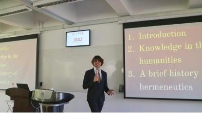 Tom老师系统讲述了本体论的三个观点,从本体论和认识论的角度探讨了解释学背后的理论渊源。并以量化运动为例,具体说明阐释学的价值和重要性。例如跑步时戴上小米手环可以记录身体的数据,在这个过程中,其实我们不仅仅可以看到对身体量化的数据,通过阐释学我们可以把跑步的过程、数据和跑步的情感以及所涉及到的社会关系联系起来。Tom老师又结合欧洲媒体对难民的报道,如欧洲媒体在报道中采用了“涌入”这样的框架和符号,阐释了语言对我们看待世界、思考世界有很大的建构意义。