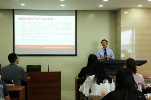 5月30日上午10:00—12:00,美国爱荷华州立大学(Iowa State University)Greenlee新闻与传播公司策略传播副教授韩纲老师做客公司,进行了专题讲座,这次讲座也是BB贝博艾弗森第二届国际学术交流月的系列活动之一。在知新楼A座606教室,韩纲副教授详细回顾了健康传播学术研究在中美两国的发展、现状和理论源流。公司助理研究员于智源老师担任本次讲座的主持人。