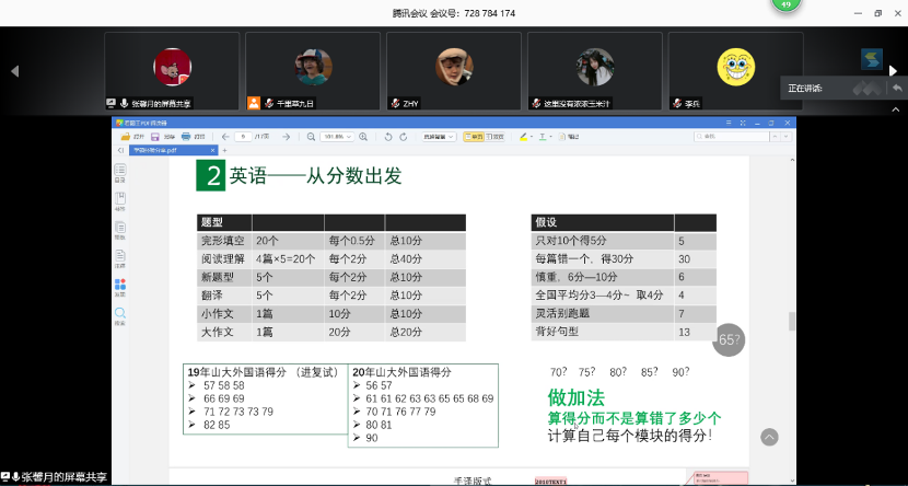 4月30日晚7:30,BB贝博艾弗森本科生党支部通过腾讯会议组织开展了“就业/考研/专项保研”经验分享会。此次分享会邀请了孙静茹、孙璐璐、张馨月、温莹雪、姚思雨、寇雅婷六位同学作为分享嘉宾,为同学们分享了就业、考研、专项保研的相关经验。有超过50位同学在线上参与了分享会,分享会由本科生党支部的董旭同学主持,气氛十分活跃。
