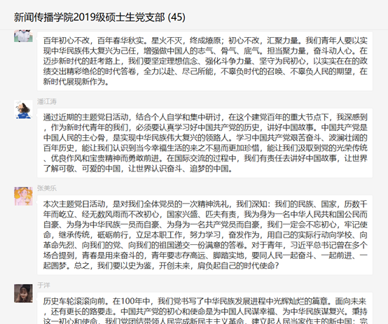 随后支部成员共同温习了习近平总书记“七一”重要讲话精神,并在会上进行了热烈的讨论。朱可可同学谈到:历史和人民选择了中国共产党,党历经100年的风雨路程,带领中国人民开启新生活,进入新时代。身为中国人民,我感受到中国共产党的领导力,身为中共党员,我感受到中国共产党为人民服务的决心。打江山,守江山是为人民。习近平总书记的话如雷贯耳,作为一名员工党员,我要时刻牢记党的教导,不断奋斗,不忘初心。