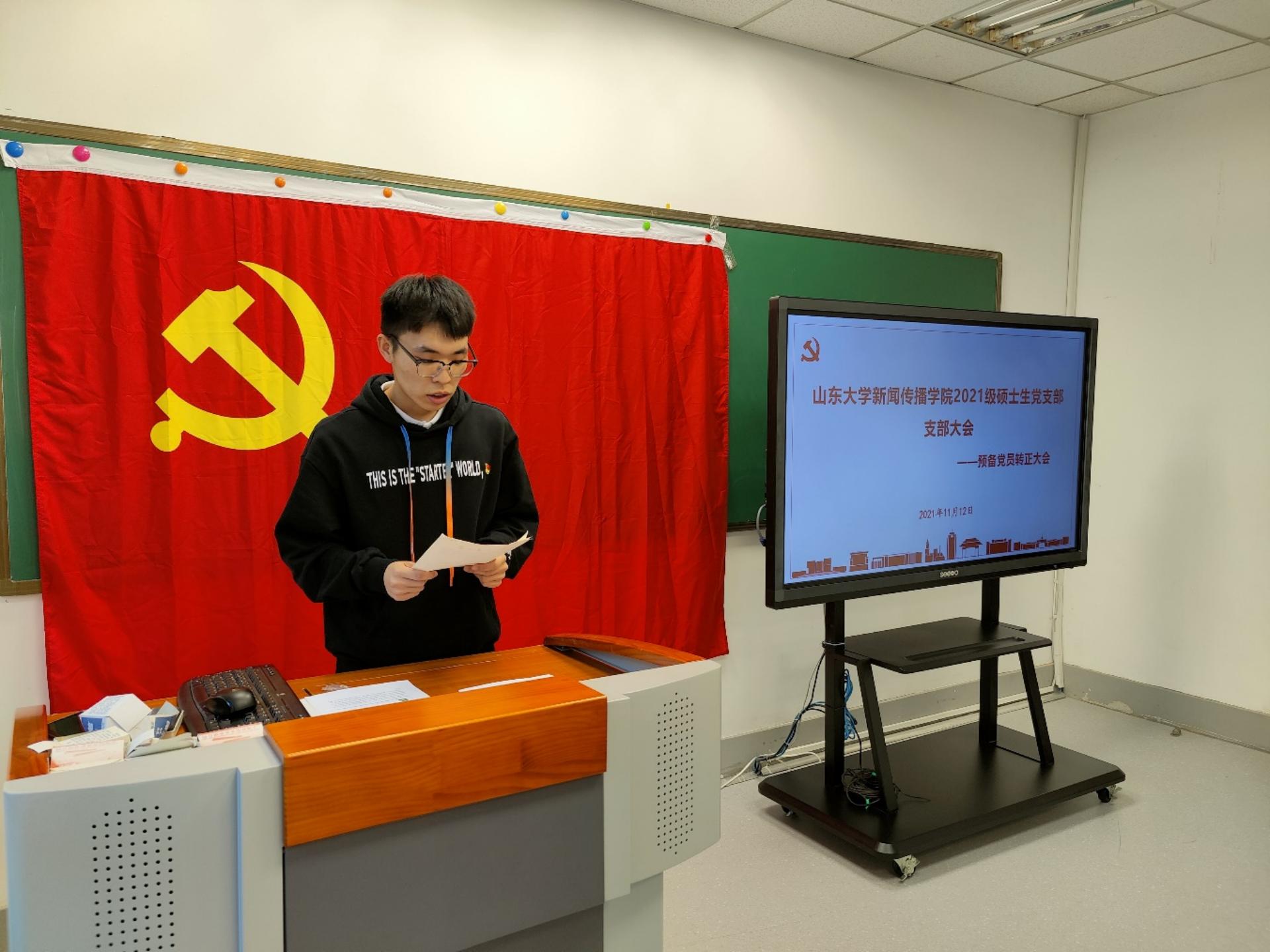 11月12日下午,2021级硕士生党支部预备党员转正大会在生命南楼226室召开。本次会议的主题是讨论支部内沈沁心、刘晨曦、苏楚潇、刘铮、王玉莹五位同志按期转正的问题。公司组织员王智洁同志列席本次会议,2021级硕士生党支部25名党员参会,会议由党支部书记卡勒布努尔·马木吐汗主持。