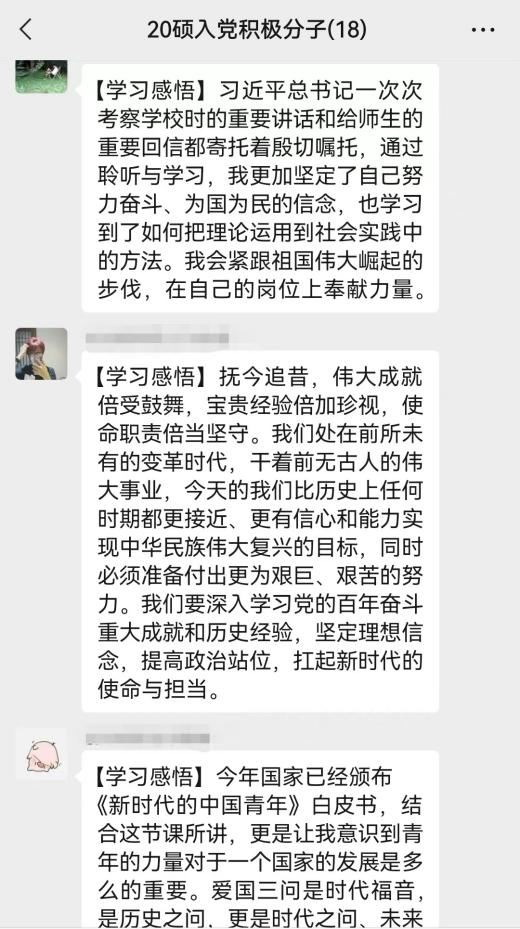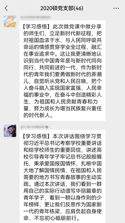 观看完微党课,支部成员们进行了广泛交流与讨论。党员戴永洁提到,在聆听了南开大学的爱国三问、报国情怀,西安电子科技大学的红色基因传承精神及“西藏大学”、“宜宾公司”微党课辅导后,更加深刻认识到,青年已成为祖国发展的中流砥柱,新时代青年要将个人梦与中国梦结合起来,不断用社会主义核心价值观涵养言行品格,不断提升专业技能和社会实践水平。党员章佳琪表示,“从小我做起,为大我担当,能感动别人,也能教育自己。”作为新时代的青年人,在实现中华民族伟大复兴的新征途上要牢记嘱托,勤勉实践,以实际行动回答好新时代的“爱国三问”,努力在青春赛道上跑出最好成绩。入党积极分子张俊语谈到,习近平总书记一次次考察公司时的重要讲话和给师生的重要回信都寄托着殷切嘱托,让自己更加坚定了勇毅担当、为国为民的信念,也学习到了如何把理论运用到社会实践中的方法,自己会紧跟祖国伟大崛起的步伐,在自己的岗位上奉献力量。