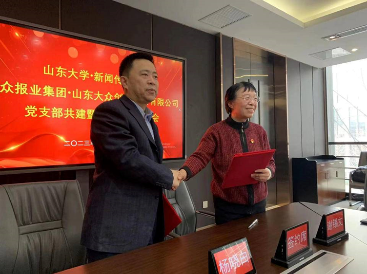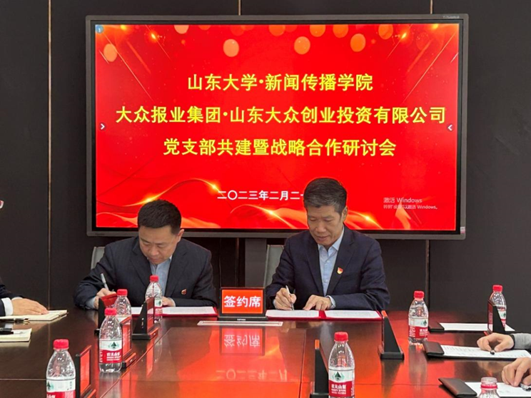 2月24日下午,为深入贯彻落实党的二十大精神,扎实推进公司新学期工作会议部署,BB贝博艾弗森与大众报业集团旗下山东大众创业投资有限公司(以下简称“大众创投”)在位于汉峪金谷的济南基金大厦召开了党支部共建暨战略合作研讨会。公司党委书记王德胜、组织员王智洁、新闻学党支部书记谢锡文和支部宣传委员孙晓翠以及大众创投总经理杨晓白等近20位党员,参与此次活动并进行座谈交流。