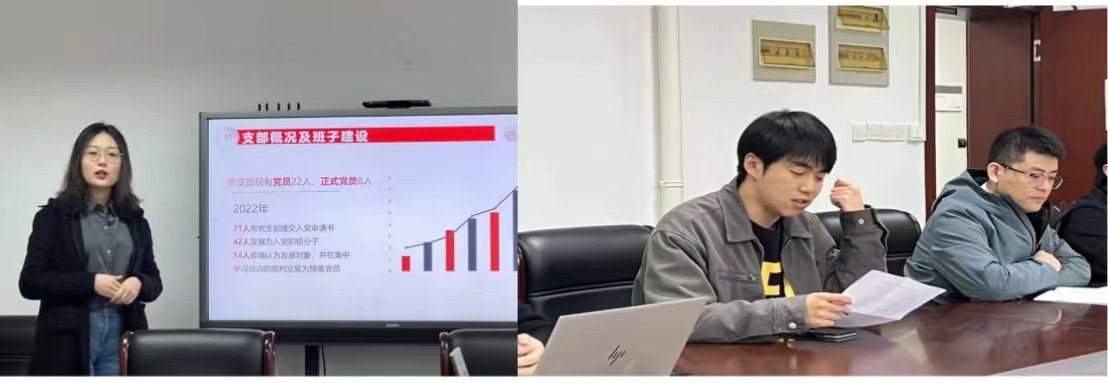 会上,拟获评2022年度五星级党支部的2021级硕士生党支部副书记李子嵩和本科生党支部的支部委员赵颖颖,分别介绍了本支部在“坚持集中学习,提升党支部凝聚力”、“树立形象,凝聚合力”以及支部班子建设、工作运行、作用发挥等方面进行了支部工作交流。