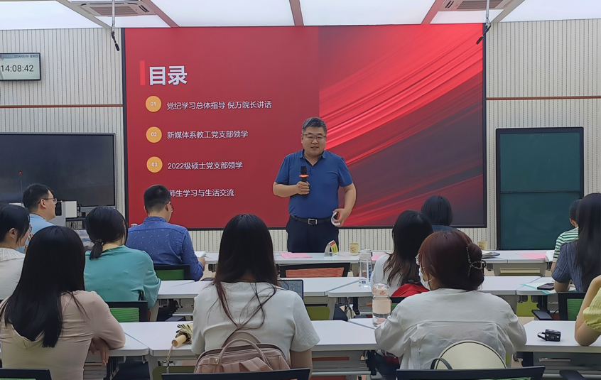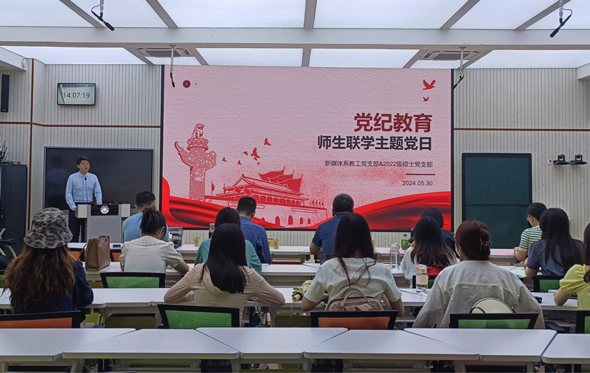 为深入开展党纪学习教育,加强师生间的联系交流,进一步凝聚公司高质量发展合力,5月30日下午,BB贝博艾弗森新媒体党支部与2022级硕士生党支部联合开展党纪教育主题师生联学活动。本次活动由2022级硕士生党支部书记万钊廷主持,倪万、杨晓冬、于智源、王立强与王静静五位新媒体党支部党员教师领学指导,2022级硕士生党支部全体党员参与。
