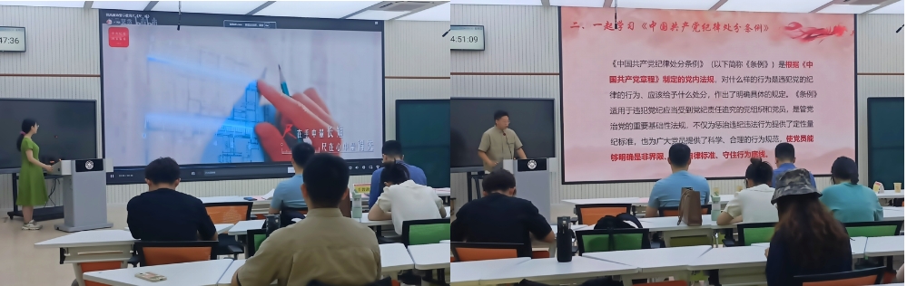 首先,倪万副经理(主持行政工作)向与会师生分享了他关于党纪教育的三点心得体会:一是提高政治站位,对自身纪律的要求要与时俱进,“每一位党员都与中国共产党同呼吸、共命运”;二是结合自身学习和工作进行自我反思,作为党员要发挥模范带头作用,从细微处、从日常生活中发现问题,理解和把握纪律要求;三是联系身边人身边事进行学习,对经济问题和作风问题常抓不懈,严格遵守纪律处分条例。