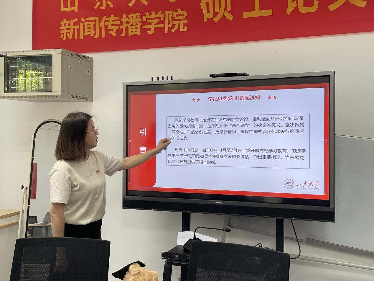 6月30日,新闻学党支部在新闻学系会议室举行党支部书记讲纪律党课活动。党支部书记张彩霞领学《中国共产党纪律处分条例》,并通报了近期公司部分违法违纪警示案例。与会党员围绕遵守党规党纪、坚守立德树人、提高自身要求进行了学习讨论。支部党员一致表示,要以公司第十五次党代会精神为指引,在遵规守纪前提下,安心工作、放手干事、锐意进取、积极作为,创造不负人民、不负时代的业绩。