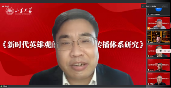 在课题汇报环节,项目首席专家刘明洋教授围绕课题研究背景、研究价值与意义、研究思路与框架、研究重点与难点、研究目标与预期成果、研究创新之处进行了汇报。课题研究将贯穿“一条主线”,即以新时代英雄观理论为主线,沿着“理论建构-理论动员-理论实践”的逻辑展开,总体上体现从理论到实践的必然过程;建构“三个体系”,即建构新时代英雄观的“理论体系”“传播体系”“实践体系”;回答“五个问题”,即“新时代英雄观为什么会产生?”“新时代英雄观到底是什么?”“英雄观的传播中传什么?”“英雄观的传播中如何传?”“英雄观的实践如何做?”;做到“五个结合”,即将“历史研究和现实研究”“质化研究和量化研究”“理论研究和实践研究”“发现问题与创新建构”“推进理论创新与服务国家战略”相结合。