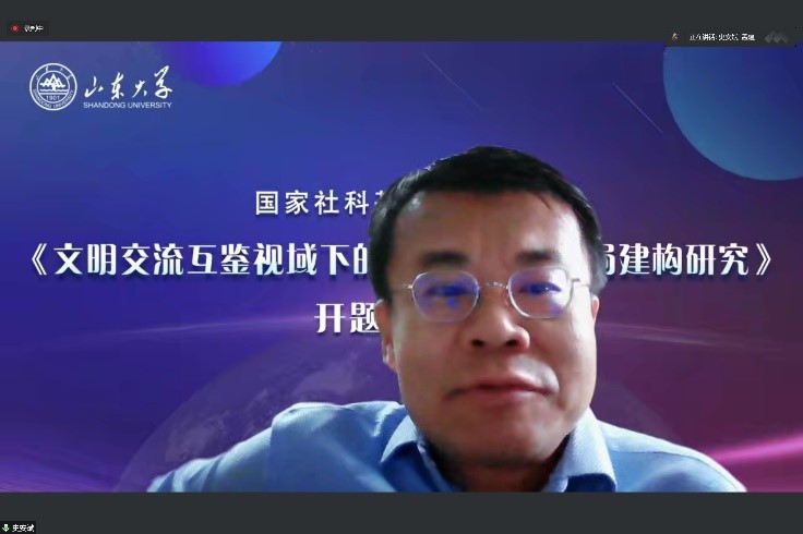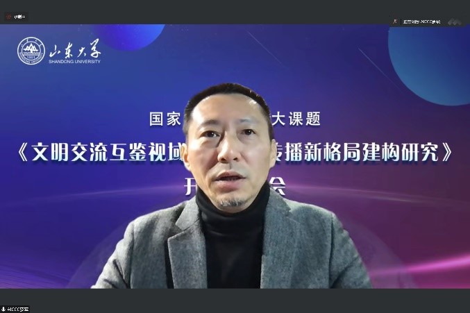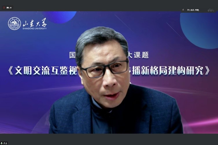 复旦大学新闻公司孟建教授对课题成功立项表示了祝贺,肯定了课题组丰富的实践积累和严密的逻辑思路。他强调,在党的二十大报告的思想引领下,加入人类文明新形态的概念必不可少。同时,孟建教授还多次提到在文明交流互鉴视域下传播领域的“量子纠缠”现象,并表示非常期待这次重大课题的新成果。
