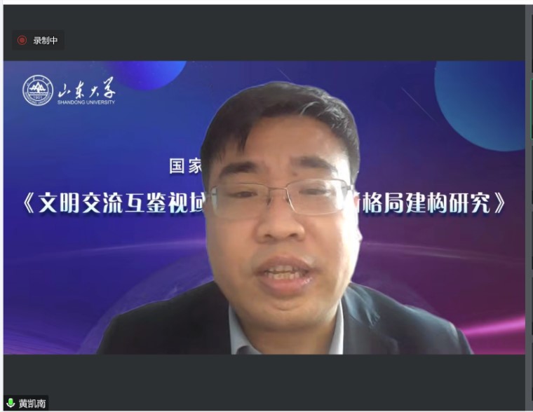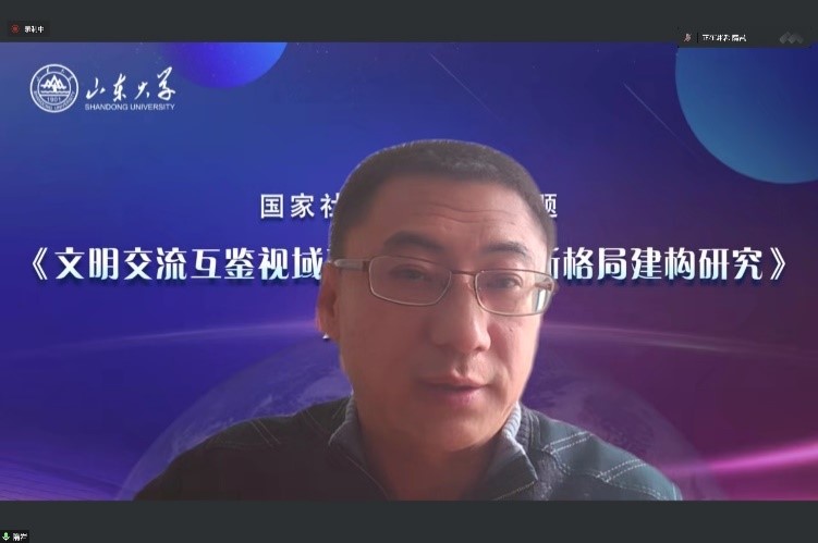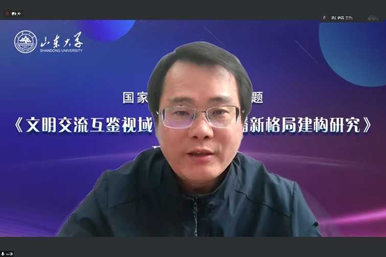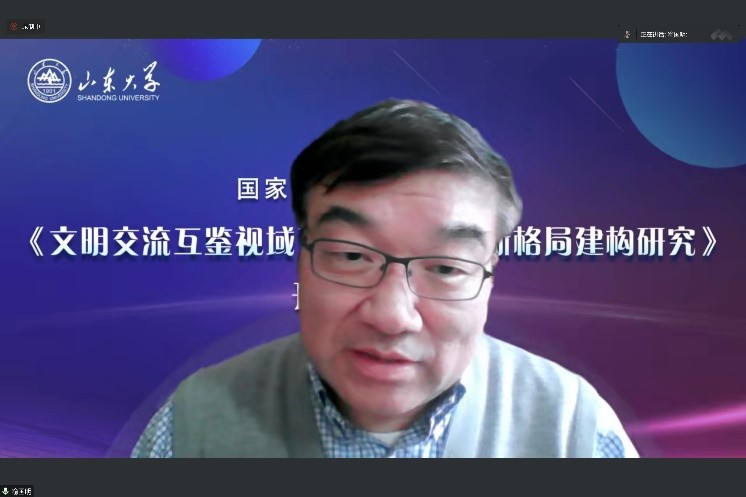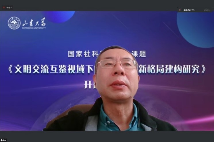 在课题汇报环节,项目首席专家戴元初教授围绕课题研究背景、研究框架、重点难点和创新之处等进行了汇报。戴元初教授提出,文明交流互鉴观是以习近平同志为核心的党中央面对“世界百年未有之大变局”提出的兼具马克思主义理论品格和中国优秀传统文化精髓的全球文明交往理念,其学术意义尚未得到系统挖掘。对此,戴元初教授提出该课题的创新点与研究价值,即重新思考全球传播新格局建构的价值逻辑、共生逻辑和责任逻辑,将这一困扰发展中国家近半个多世纪的难题转化为有清晰思考框架和根本行动指南的实践问题,并为问题研究提供核心的哲学基础和理论范式,具有符合时代需求的理论风格和实践理性。