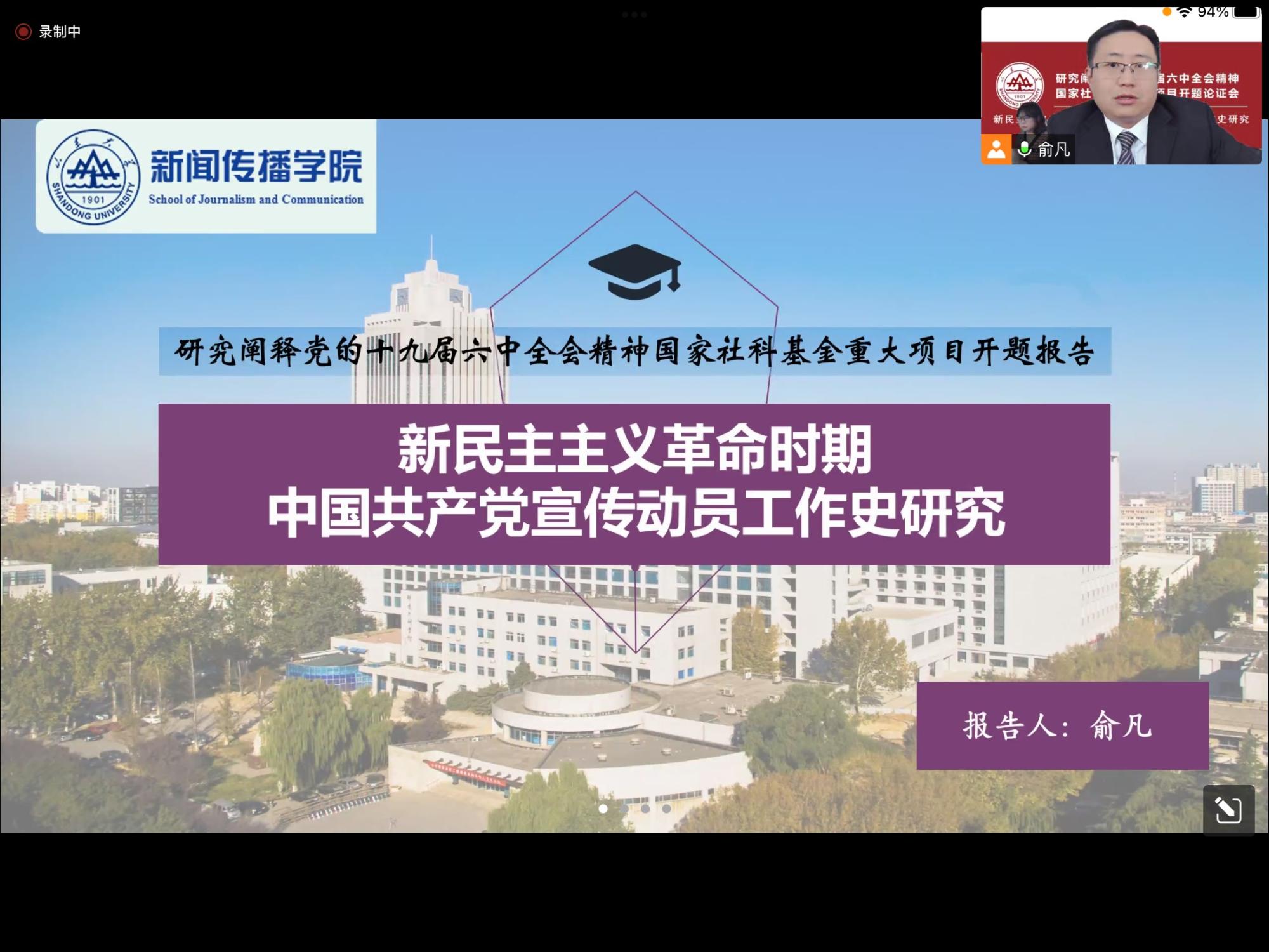 2022年11月13日上午,由公司俞凡教授担任首席专家的研究阐释党的十九届六中全会精神国家社科基金重大项目“新民主主义革命时期中国共产党宣传动员工作史研究”开题论证会在BB贝博艾弗森顺利举行。