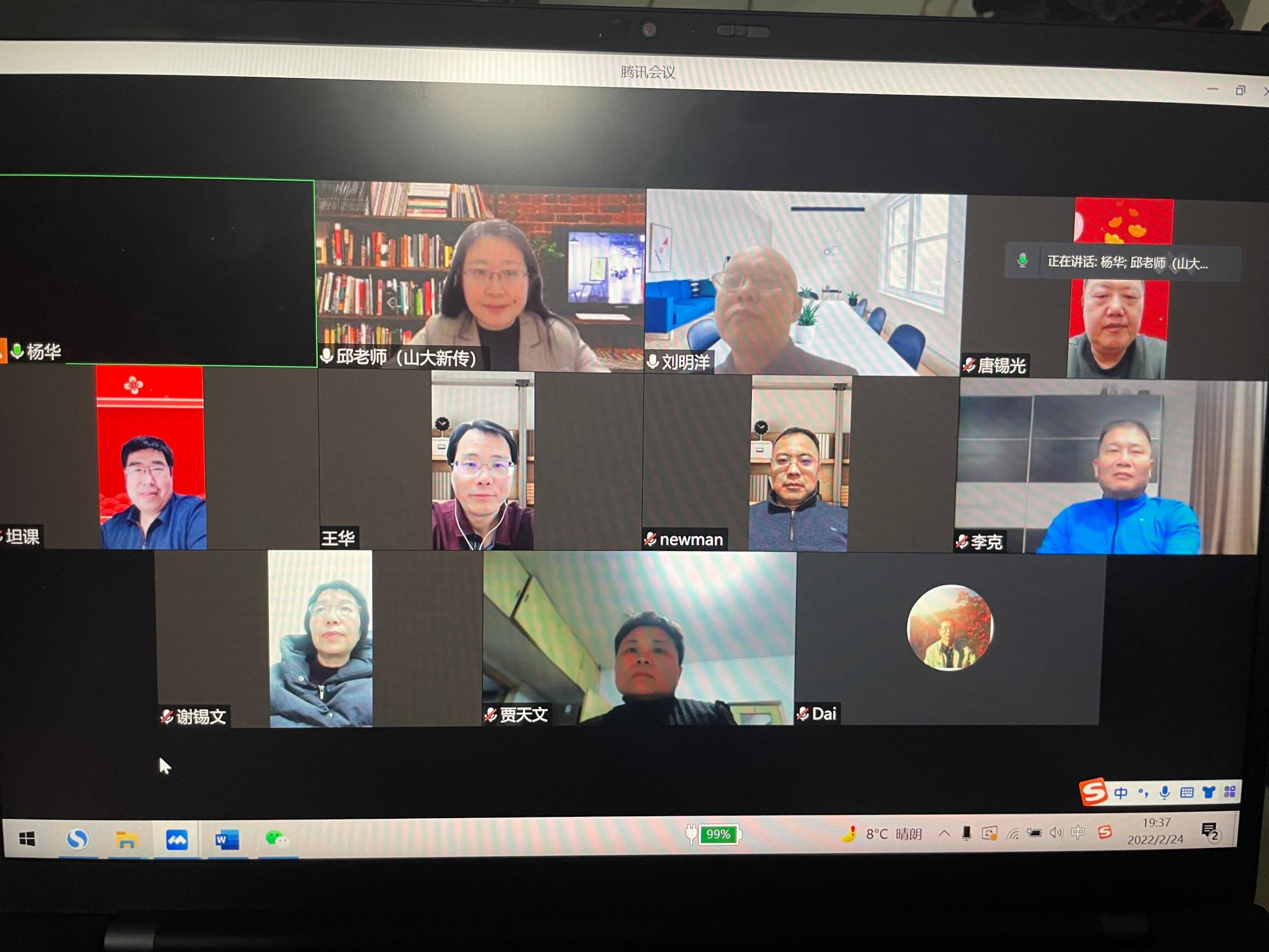 为促进公司国家社科基金重大项目立项再获佳绩,2月24日晚,公司召开2022年度国家社科基金重大项目选题线上论证会。BB贝博艾弗森经理刘明洋、副经理邱凌、公司教授们参加了论证和分享会,会议由邱凌主持。