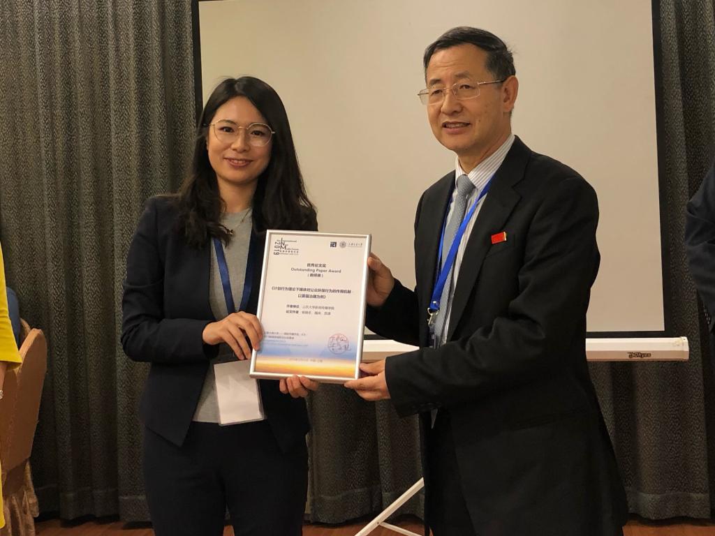 此次论坛数百篇投稿中遴选出150余篇论文,由杨晓冬老师与其研究生合作完成的2篇学术论文《老员工网络欺凌影响因素的实证研究》与《计划行为理论下媒体对公众环保行为的作用机制——以雾霾治理为例》被会议接收,并分别在主题为“环境、健康传播与风险感知”和“公共传播与媒介伦理”的分论坛中进行了展示。本次新媒体国际论坛还评选出了5篇教师组优秀获奖论文,杨晓冬老师团队的《计划行为理论下媒体对公众环保行为的作用机制——以雾霾治理为例》成为获奖论文之一。