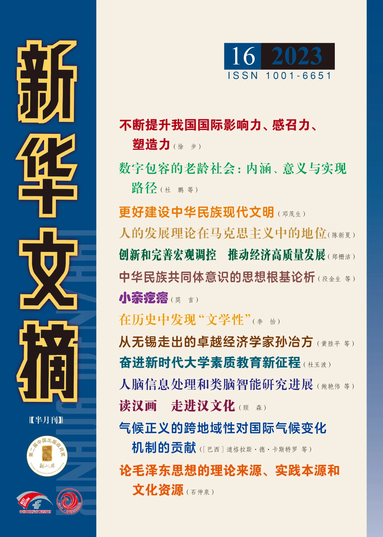 近日,公司刘明洋教授、田璐嘉博士生在《中国编辑》(CSSCI)(2023年第4期)发表的论文《价值、路径与格局:中国式现代化背景下的舆论生态治理》被《新华文摘2023年第16期)全文转载。